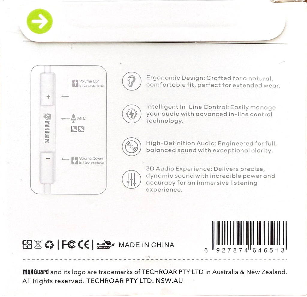 Experience superior sound quality with the MAXGuard MZ01 CrystalSound Earphones, designed for Lightning devices. These earphones offer a plug-and-play experience with distortion-free audio, ensuring every note is crisp and clear.