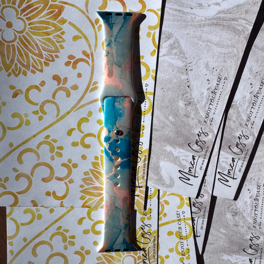 A swirl of peach, turquoise, and ivory—Peach Marble captures the elegance of polished stone with a modern twist. Like a sculptor’s first touch on fine marble, this band is soft yet sophisticated, made to elevate every look with effortless grace.