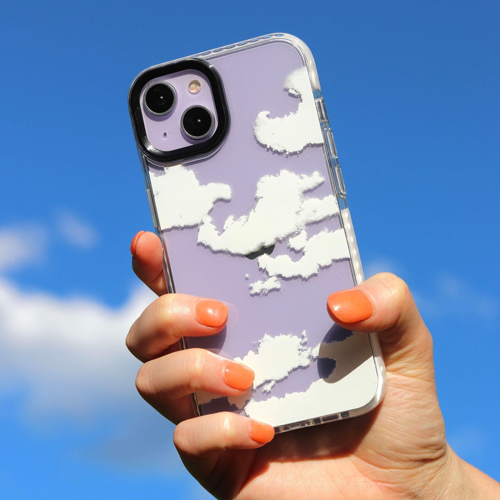 Keep your head in the clouds with this dreamy phone case which represents stability and positivity, featuring white clouds floating on a transparent case. The case has tough anti-knock flexible white edges - which will absorb nasty shocks from accidental drops.