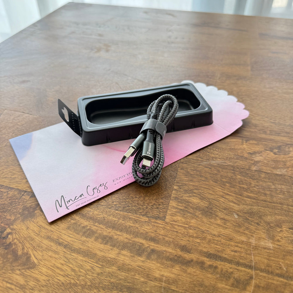 - Two-in-one cable for charging and data transmission, capable of carrying a 3A high current output.