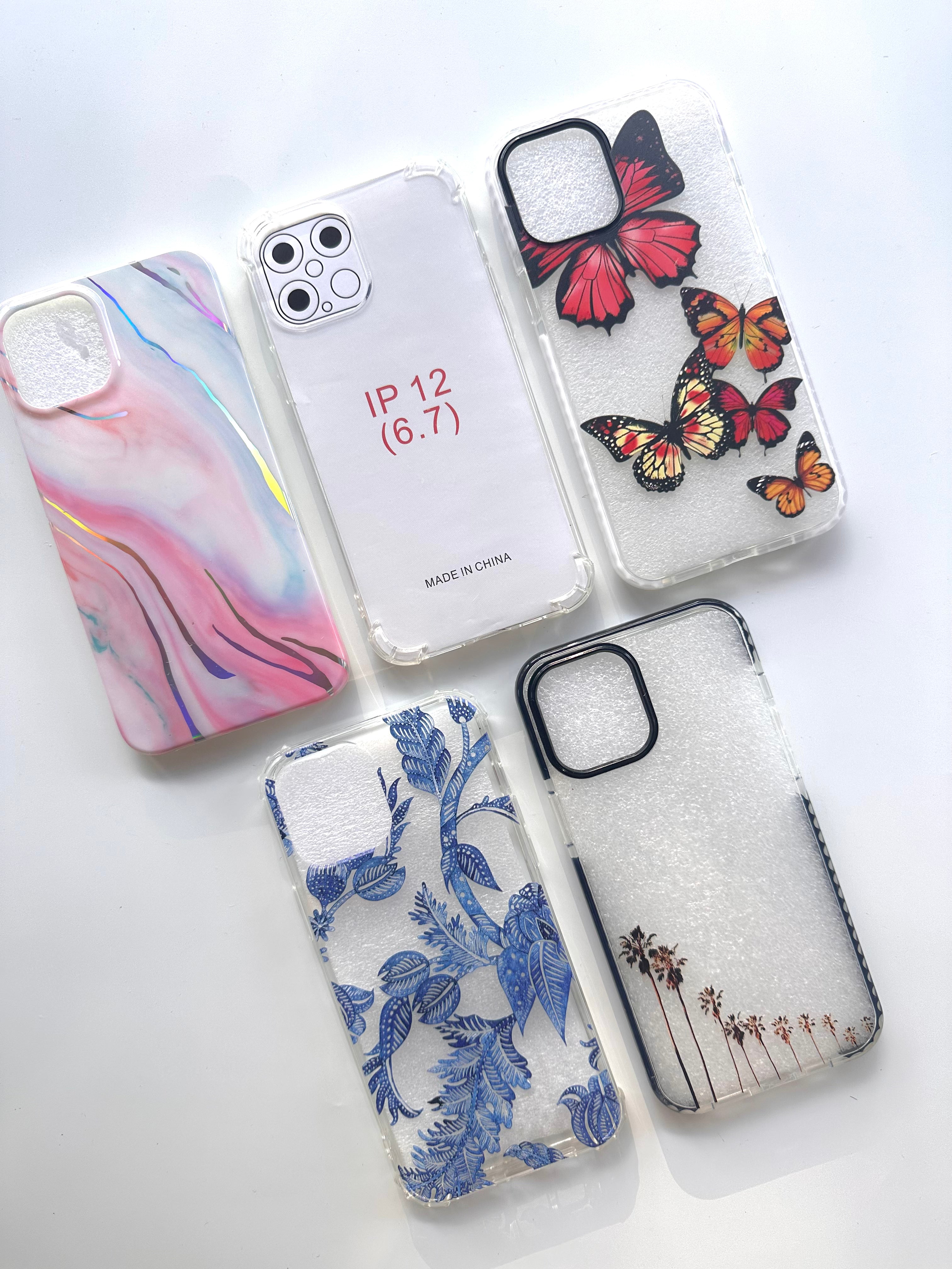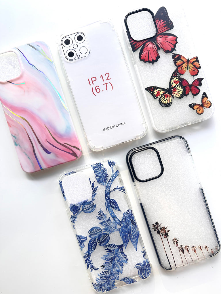 5x cases for iPhone 12 Pro Max. Styles provided are exactly as shown in the product image. These are styles which we are no longer stocking on our website. There are no faults with the cases.