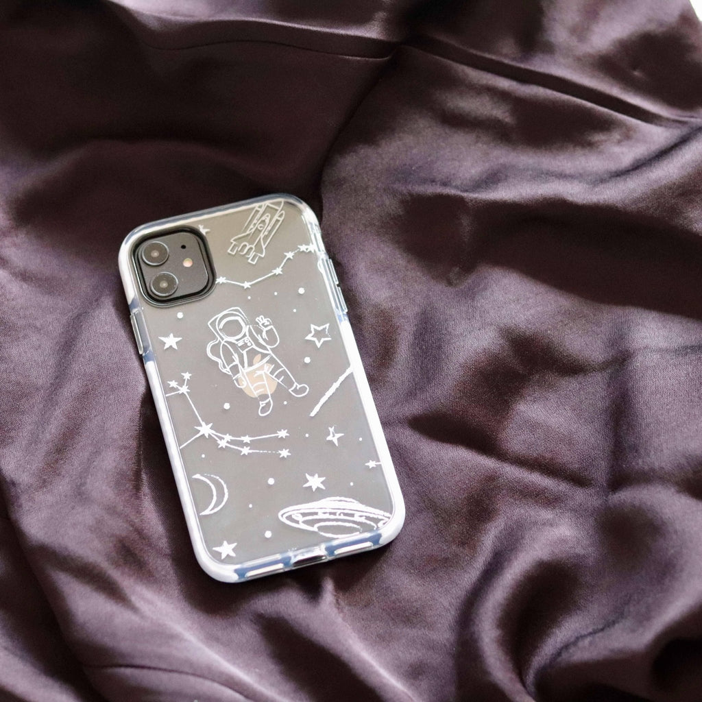 This super-funky Spaceman - Protective White Bumper mobile phone case is out of this world! Floating amongst the vast star-filled sky is a spaceman, rocket, the moon and of course, a UFO! This spacey sketch-style design features tough anti-knock flexible white edges, allowing the case to absorb shocks from accidental slips and drops. The case is transparent and looks great on any colour smartphone! Gift it or get it today!