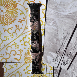 Soft blush roses on a midnight black canvas—Vintage Bloom is where timeless romance meets modern flair. Perfect for old souls with bold hearts, this band brings elegance with every flick of the wrist.